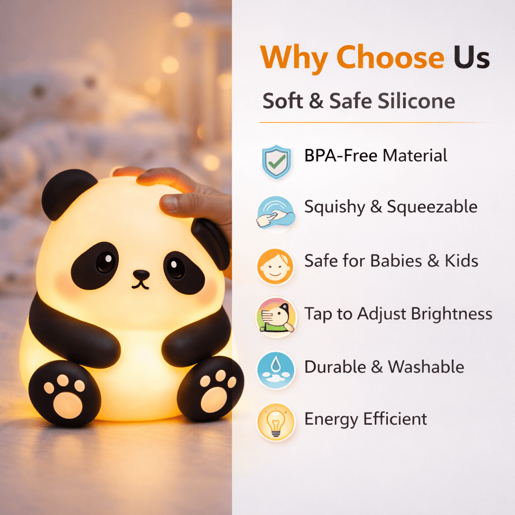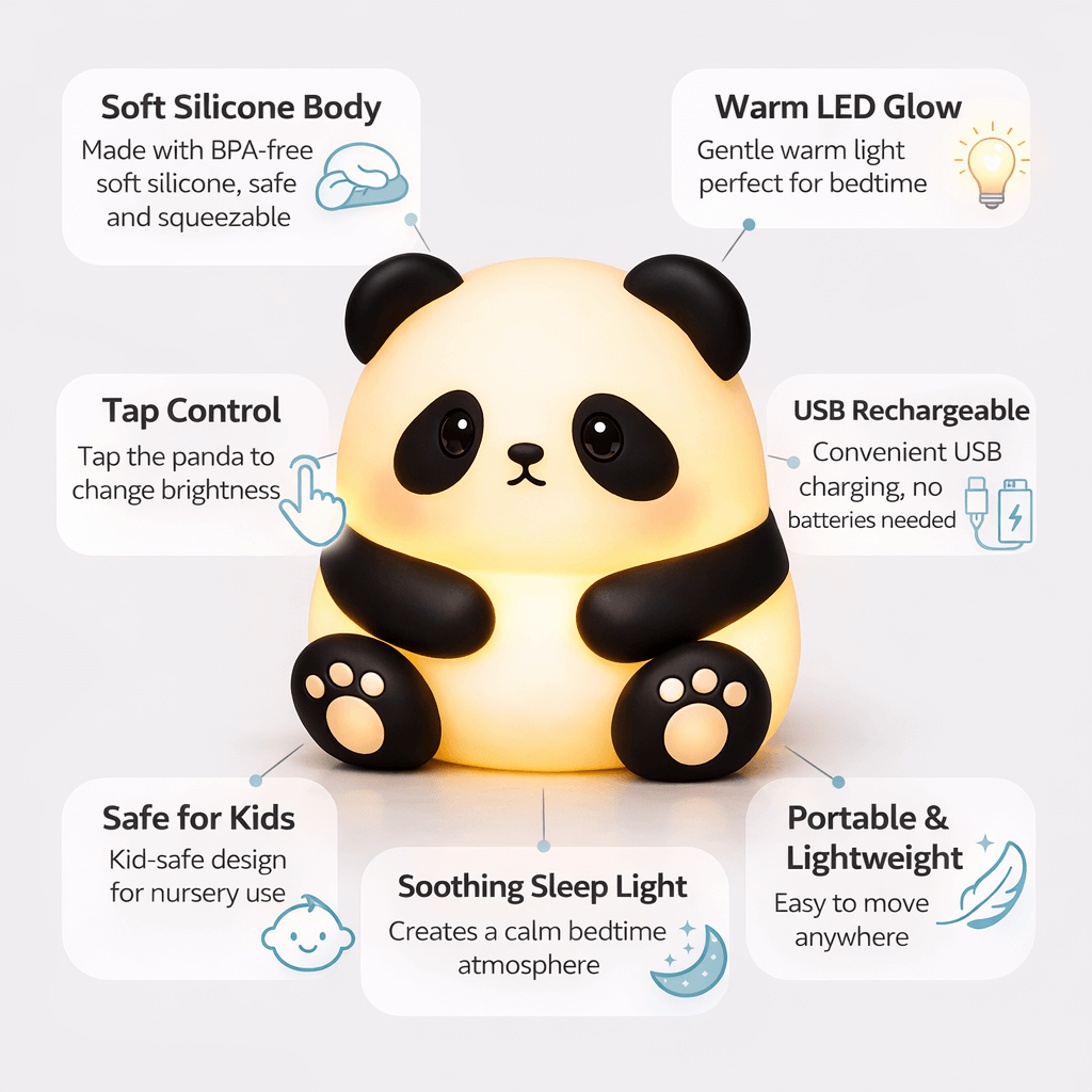 Let the adorable panda’s soft light keep you company through the night — calming, comforting, and irresistibly cute!