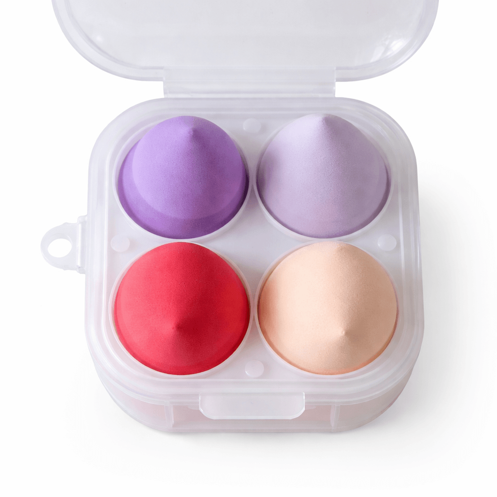 Effortlessly achieve a flawless makeup look with this 4-piece makeup sponge set, neatly packed in a convenient storage box. Each sponge is crafted from soft, non-latex material for smooth, even application of foundation, concealer, or powder. The sponges expand when wet for streak-free blending and are gentle on all skin types. Perfect for both wet and dry use, they are reusable and easy to clean. The compact case keeps your sponges organized, clean, and ideal for travel or at-home use, making your beauty routine simple and hygienic.