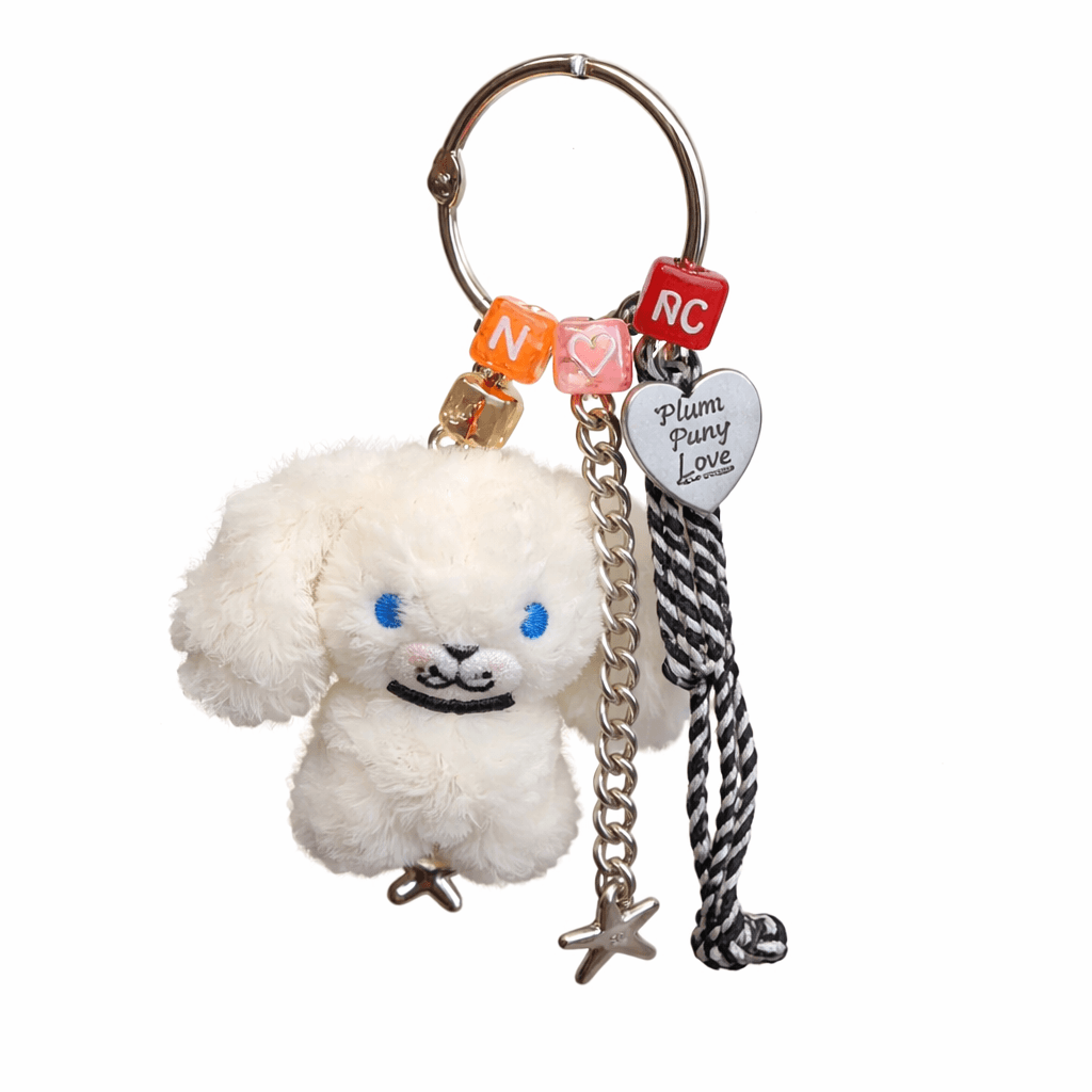 The cute plush character design gives the charm a cozy and kawaii aesthetic, while the braided rope detail adds a modern and fashionable look. The colorful bead accents and metal key ring make it both stylish and functional for everyday use.
