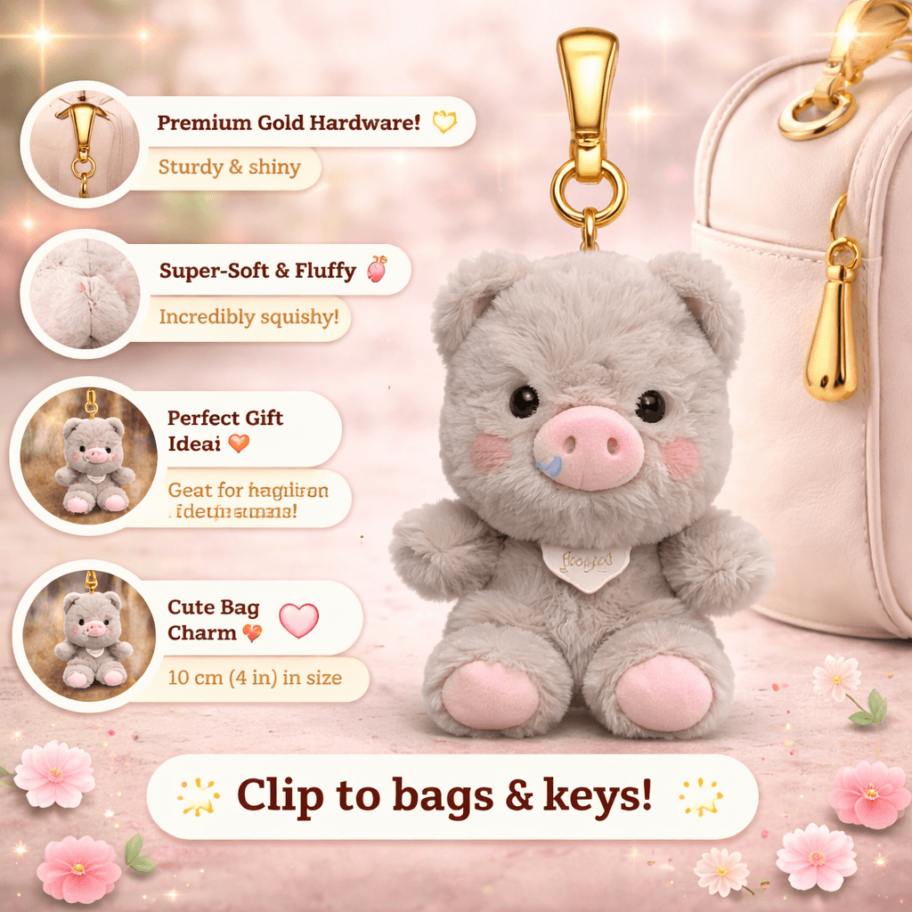 The Plush Piggy Pink Keychain combines soft plush comfort with a cute aesthetic design, making it a perfect accessory to personalize your bags and keys with a playful and charming touch.