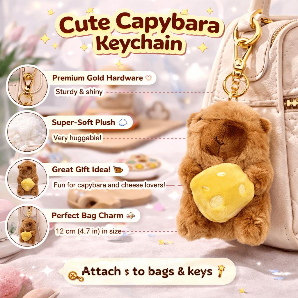 Add a touch of adorable charm to your accessories with the Plush Soft Capybara Keychain. Featuring a lovable capybara plush character holding a cute yellow fruit, this keychain is perfect for decorating handbags, backpacks, purses, and keys.