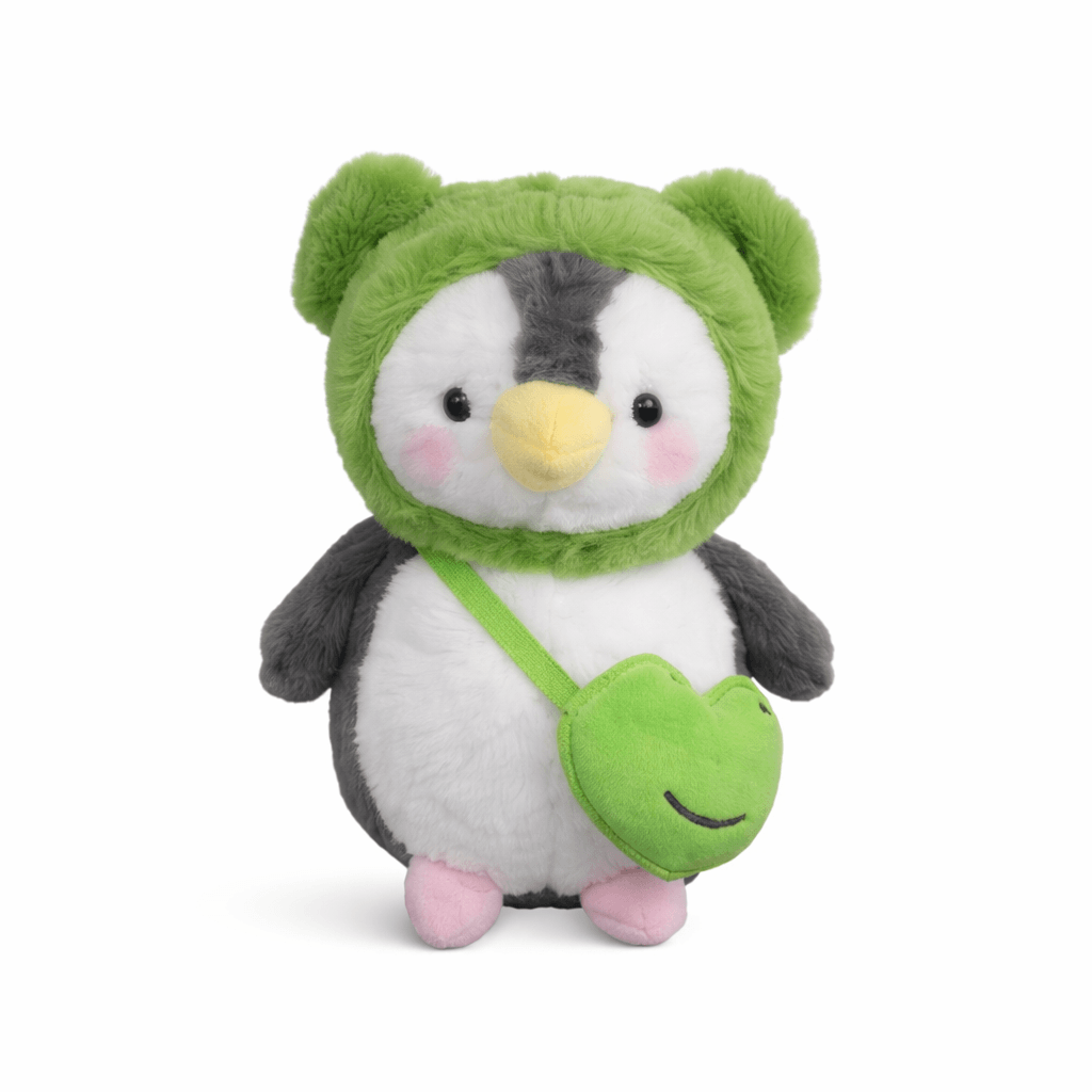 Cute Penguin Plushiee Design – Adorable penguin character with green hoodie
