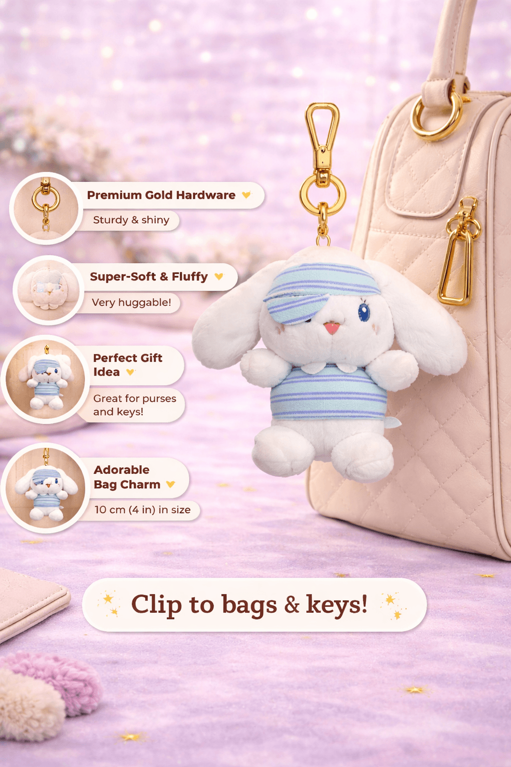 Add an adorable Sanrio touch to your accessories with the Sanrio Cinnamoroll Plush Blue Cap Keychain. Featuring the lovable Cinnamoroll character wearing a cute blue striped cap and matching outfit, this soft plush keychain is perfect for decorating handbags, backpacks, purses, and keys.