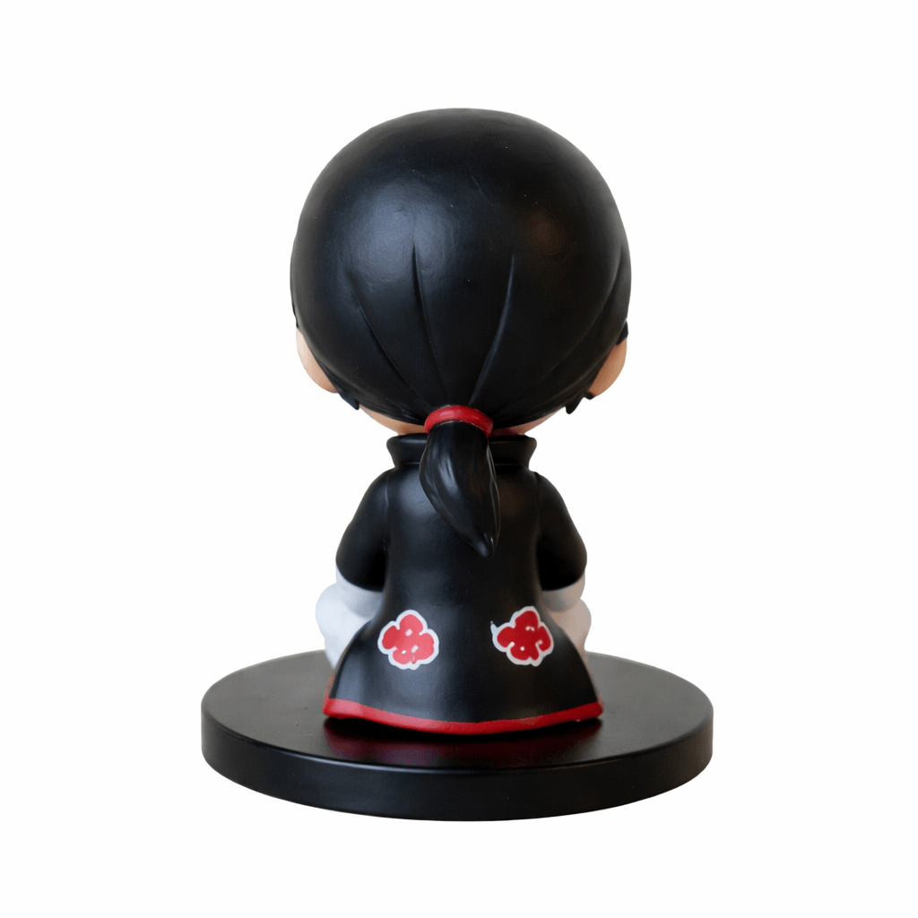 Bring home the mysterious and powerful Itachi Uchiha with this adorable chibi-style collectible figurine. Itachi is captured in his iconic black outfit, sporting the Konoha headband and his distinctive red Sharingan eyes. Sitting peacefully, he holds a tiny blue doll, adding a touch of charm to this fierce ninja’s persona.