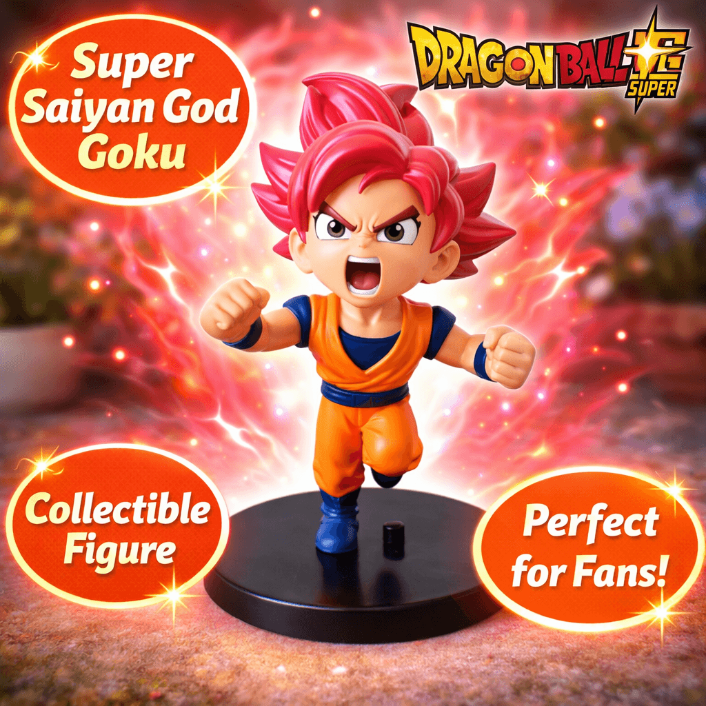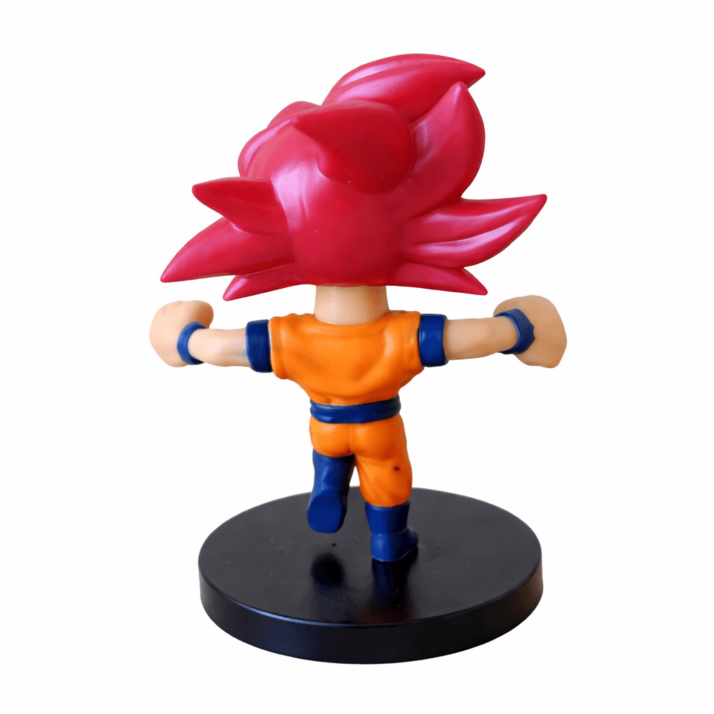 Unleash divine power into your anime collection with this Super Saiyan God Goku chibi figurine! Featuring Goku in his signature orange gi with vivid red spiked hair, this mini figure captures the fierce energy of the Saiyan warrior from the Dragon Ball Super series.