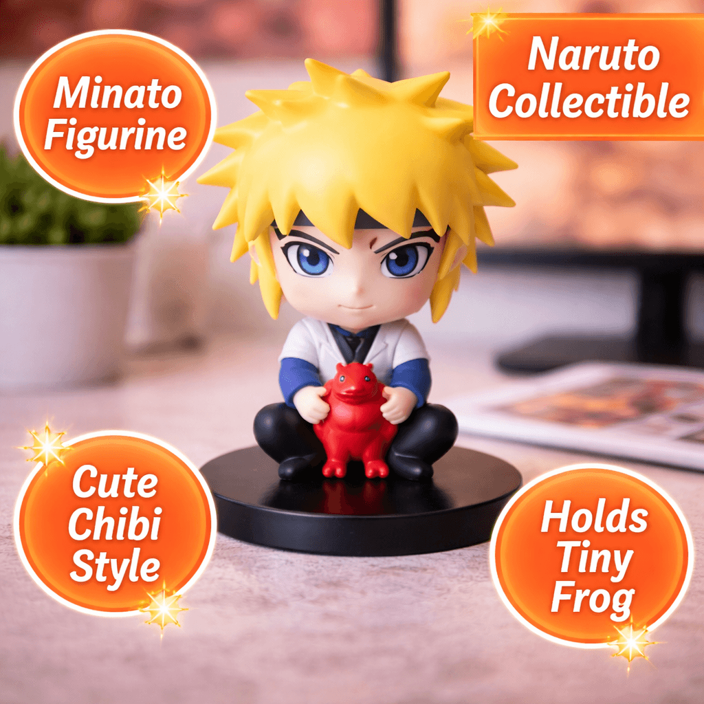 Capture the spirit of the legendary Fourth Hokage, Minato Namikaze, in this charming chibi-style collectible figurine. With his iconic spiky yellow hair, blue eyes, and the Leaf Village headband, Minato is depicted sitting and holding a tiny red frog, representing his connection to the Toad Summoning technique. The detailed features and cute expression make this figurine a perfect addition to any Naruto fan's collection.