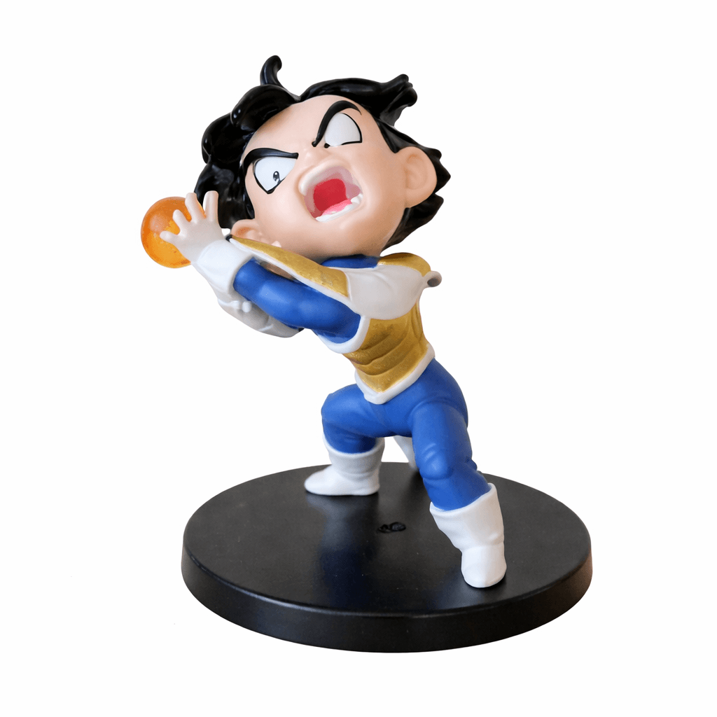 Unleash the power of the Prince of Saiyans with this Chibi Vegeta Collectible Mini Figure! Capturing his fierce expression and battle-ready stance, this anime-inspired figure shows Vegeta mid-shout while clutching a Dragon Ball — a moment full of energy and classic DBZ attitude.