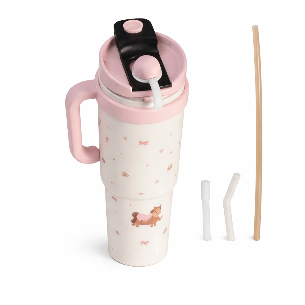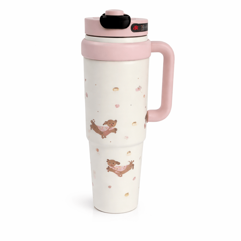 Stay hydrated in adorable style with the BINGBA 40oz Tumbler, featuring a pastel pink design and cute dog illustrations. Perfect for hot or cold drinks, this tumbler includes a comfortable handle, a leak-proof flip lid, and a reusable straw for all-day sipping. Made with durable materials and double-wall insulation, it’s ideal for school, work, the gym, or travel. Lightweight, easy to clean, and irresistibly kawaii!