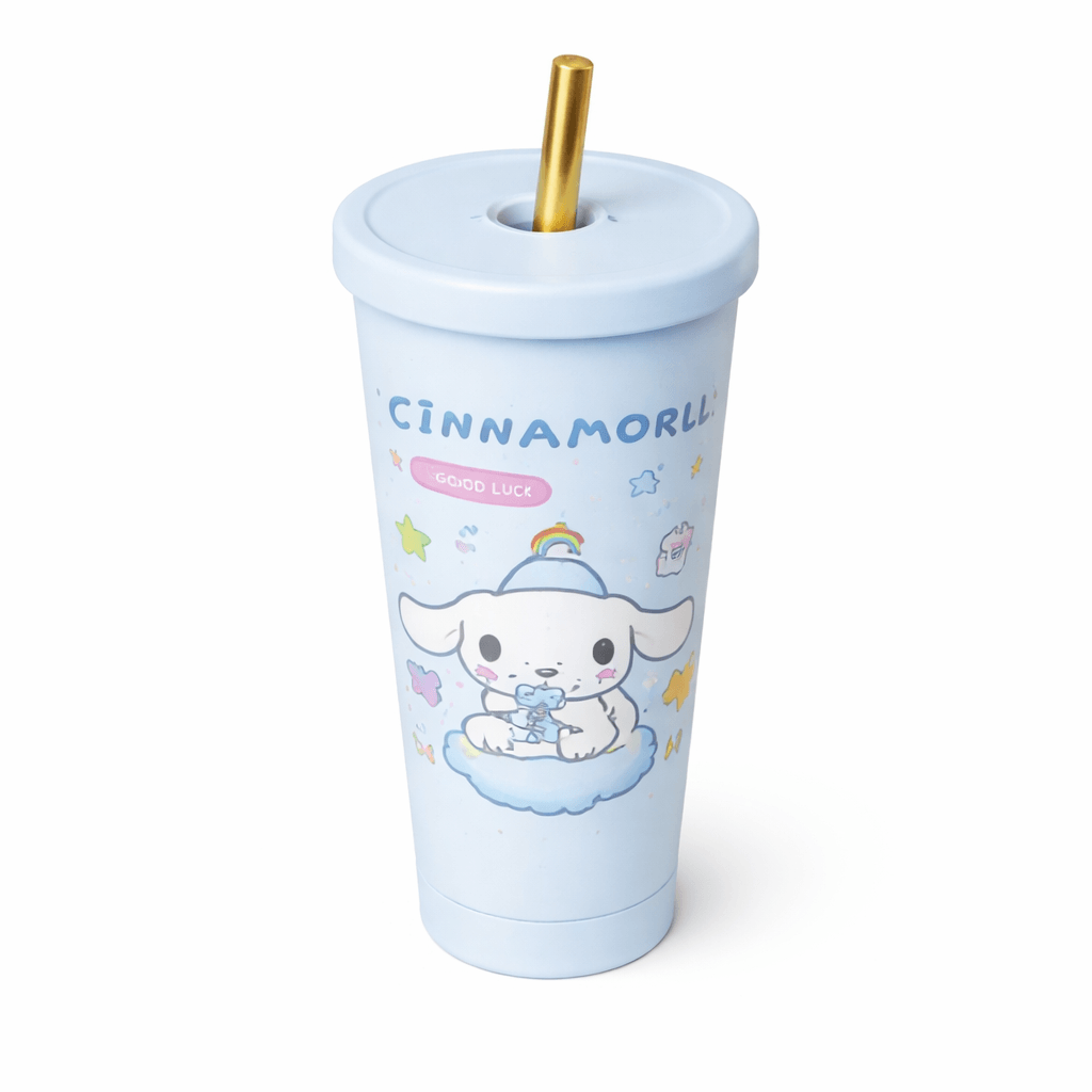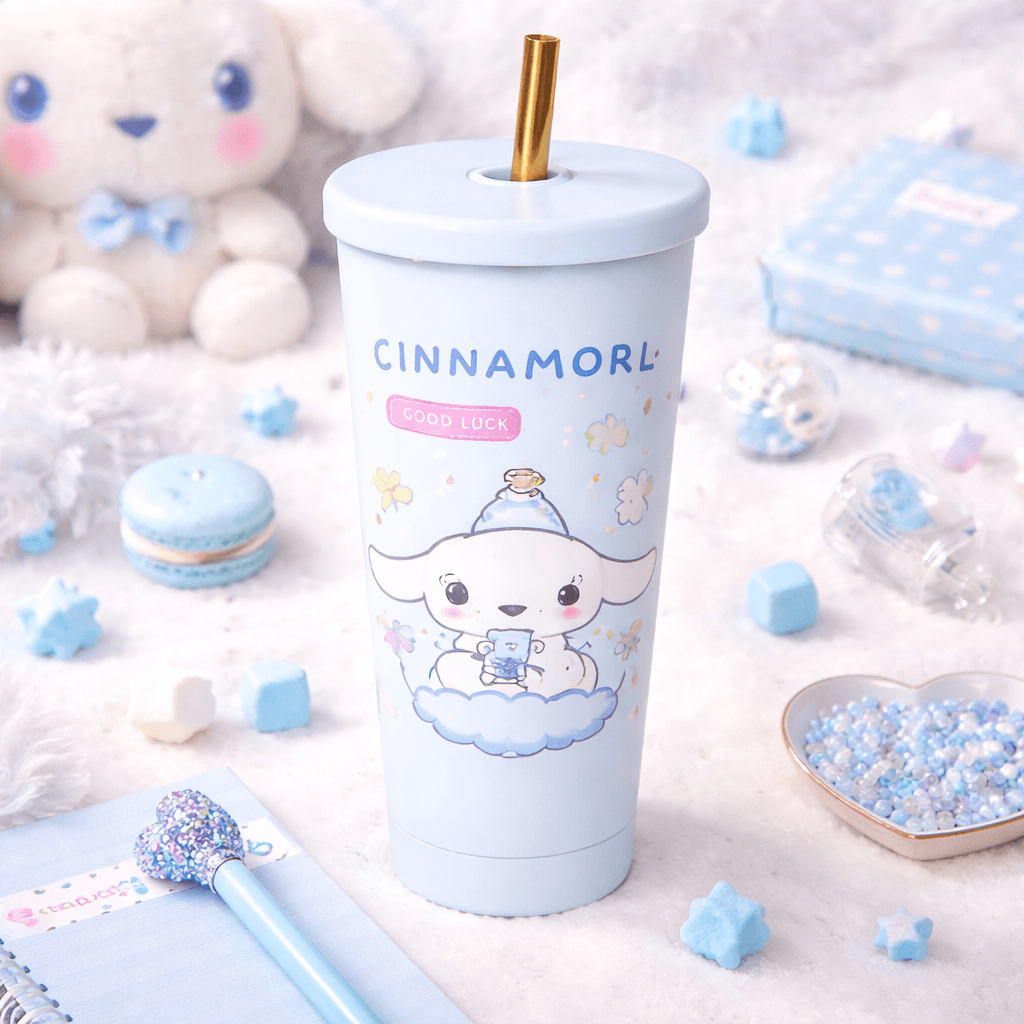 Cinnamoroll “Good Luck” Sky Tumbler – Pastel Blue Edition (with Straw)