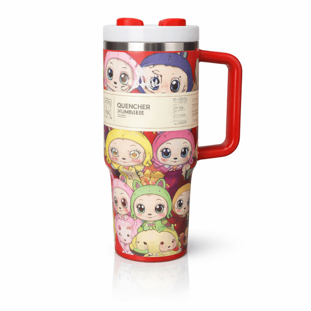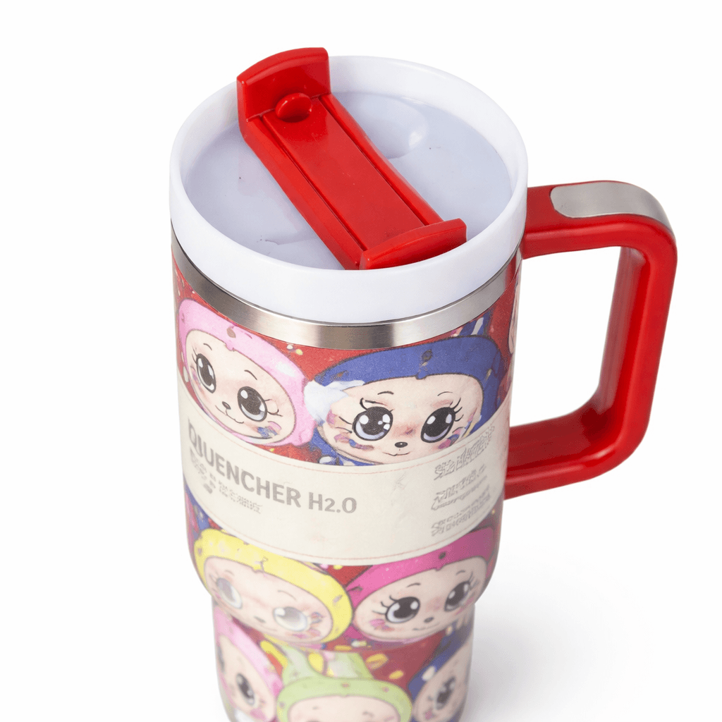 Quencher H2.0 Tumbler – 40 oz Colorful Cartoon Faces Edition with Red Handle