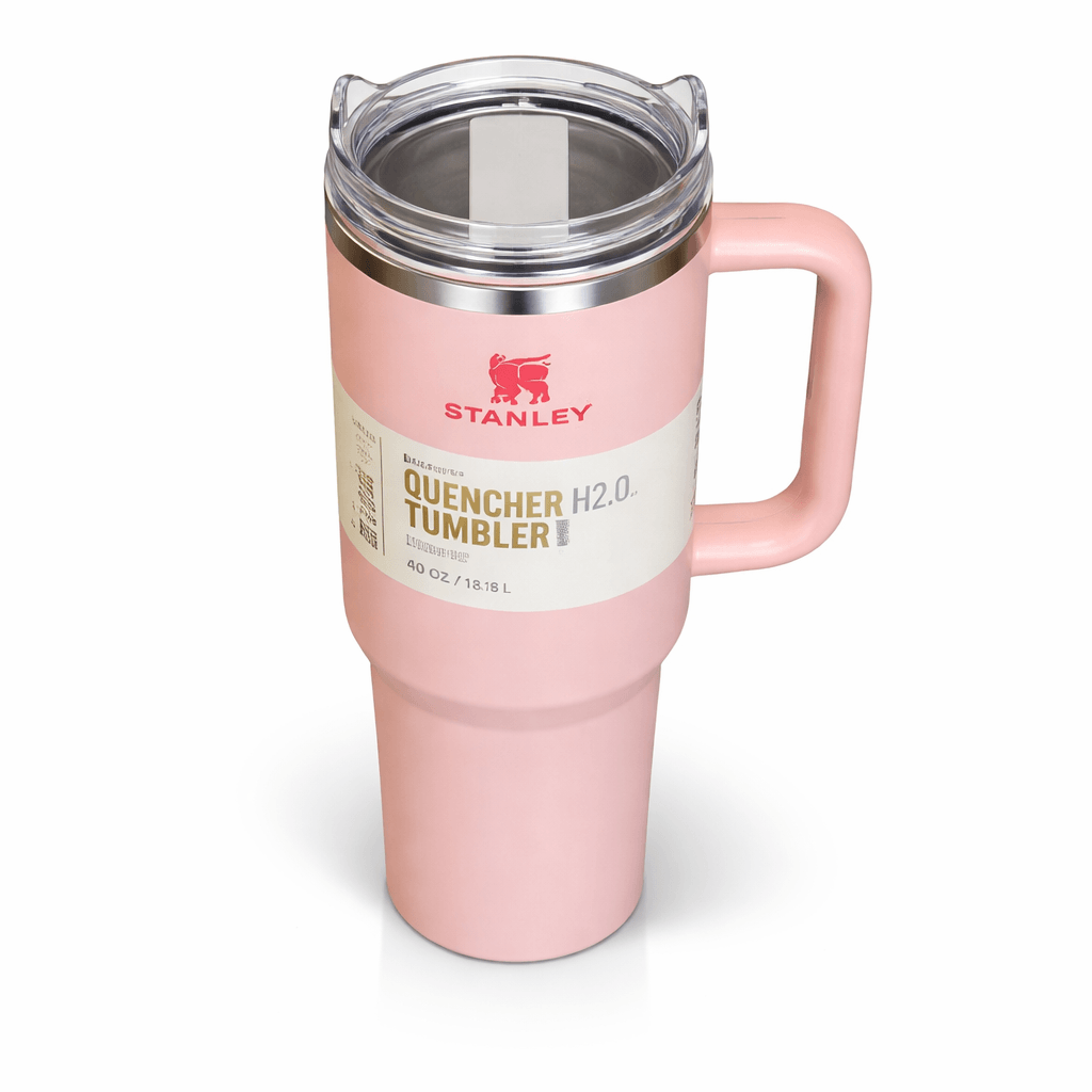 Bring a soft, feminine touch to your hydration game with the Stanley Quencher H2.0 FlowState Tumbler in Peach Pink. This stylish 40 oz tumbler doesn’t just look great — it performs like a pro. With double-wall vacuum insulation, your beverages stay cold for hours, and the FlowState™ 3-position lid lets you switch between sipping, straw use, and full closure with ease. Made from 90% recycled stainless steel, it's as eco-conscious as it is beautiful. The ergonomic handle and cupholder-compatible base make it perfect for busy, on-the-go lifestyles.