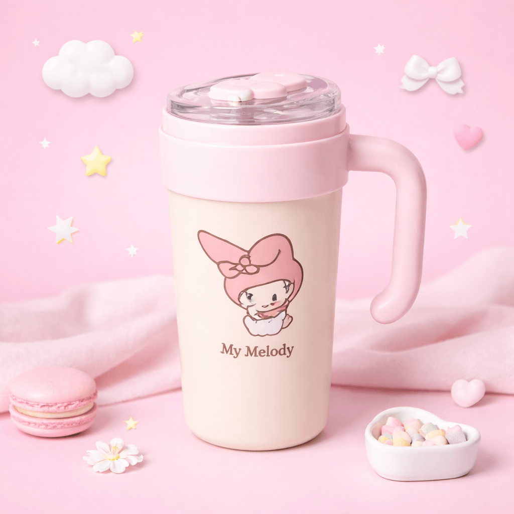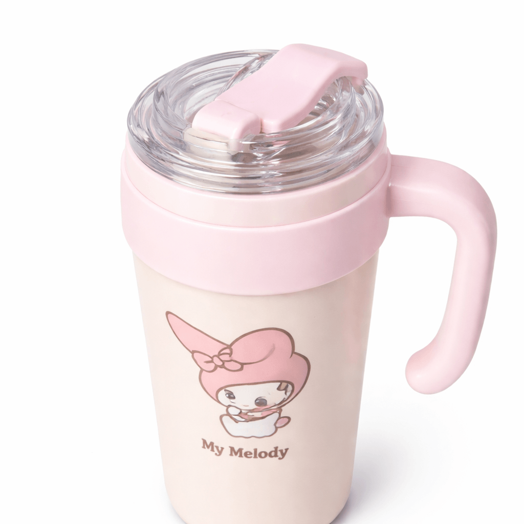 Bring sweetness to your sips with this lovely My Melody Travel Mug! Dressed in soft pastel pink, this 14 oz tumbler features an adorable My Melody illustration that’s perfect for fans of cozy, kawaii vibes. With a comfy handle and a spill-resistant lid, it's ideal for taking your favorite drinks on the go. Whether it’s tea, coffee, or something cool, carry it in true Sanrio style!