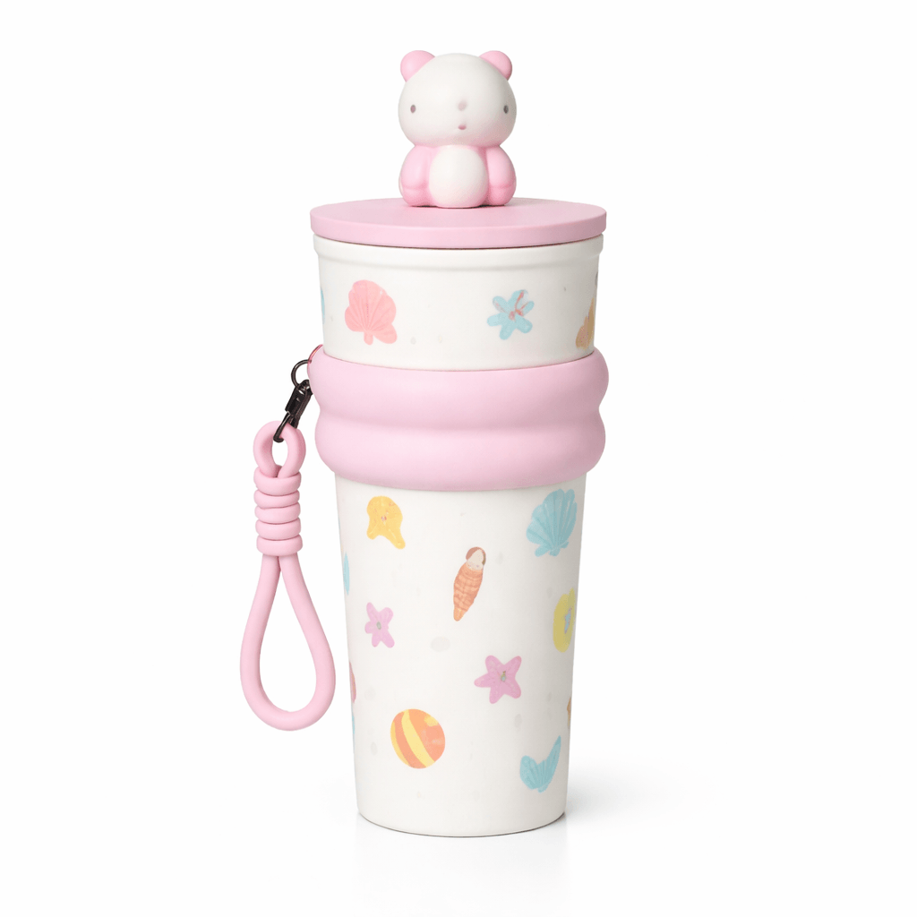 Sip in style with this charming Panda Travel Cup, the perfect blend of functionality and cuteness! Designed with playful pastel patterns and topped with an irresistibly cute panda figurine, this 14 oz cup is ideal for tea, coffee, or your favorite cold drinks. The soft pink grip band and detachable hand strap make it easy to carry wherever you go—whether you're commuting, studying, or just lounging in cozy comfort.