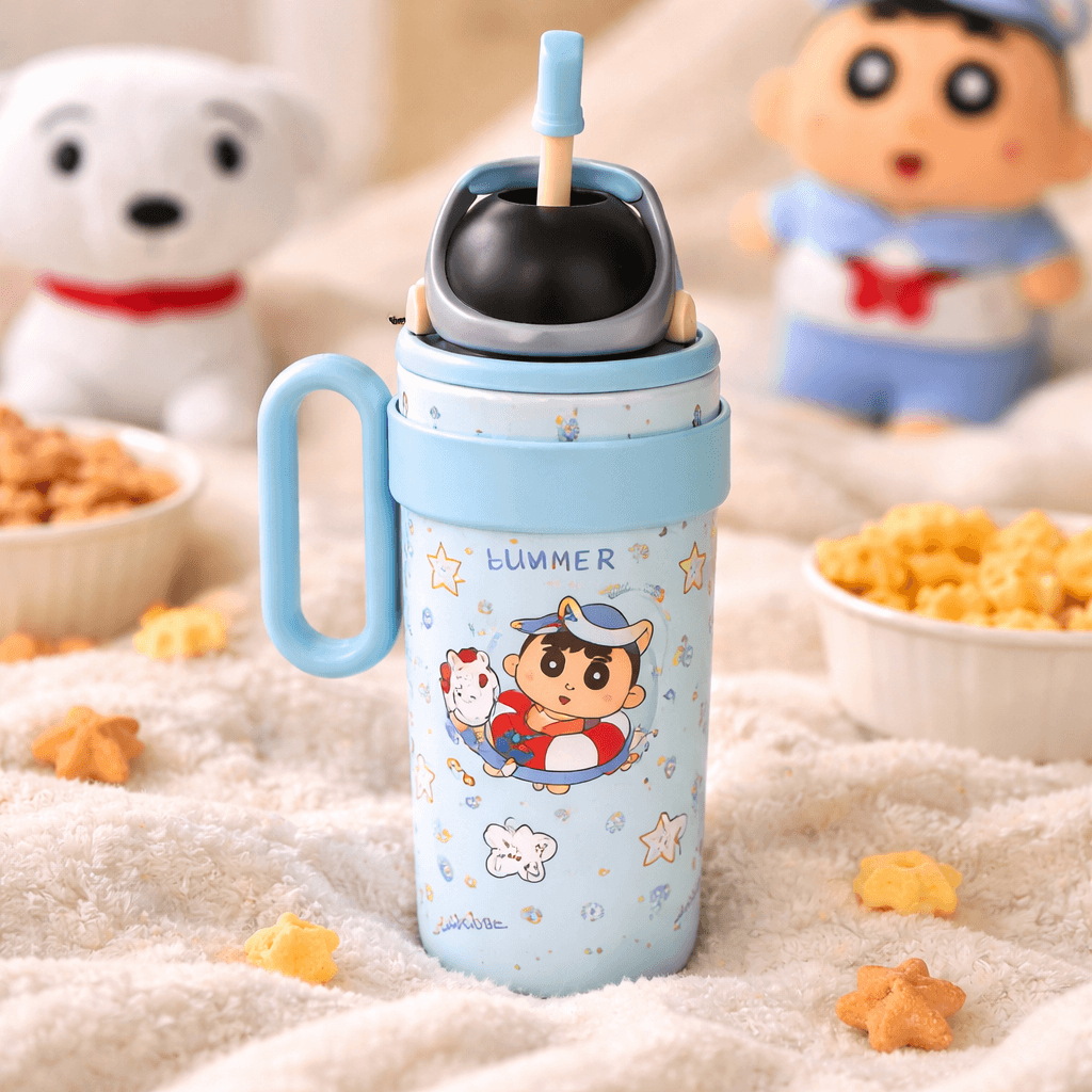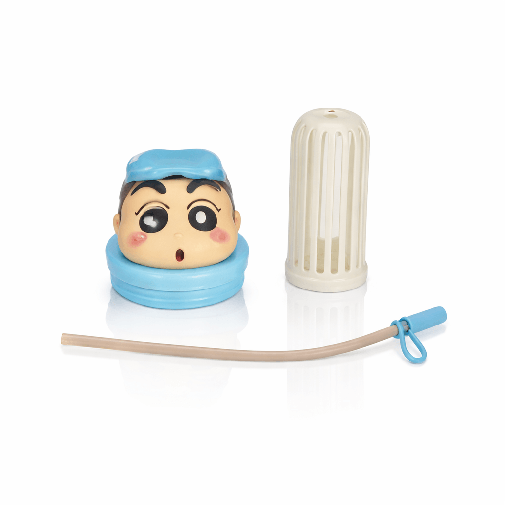 Make every sip fun with the adorable Shinnosuke Blue Drinking Cup! This playful tumbler features the beloved character Shinnosuke with a surprised expression on the lid, paired with a matching blue handle for easy carrying. The cup is decorated with cute summer-themed illustrations and comes with a reusable straw, perfect for kids or fans of this iconic cartoon.
