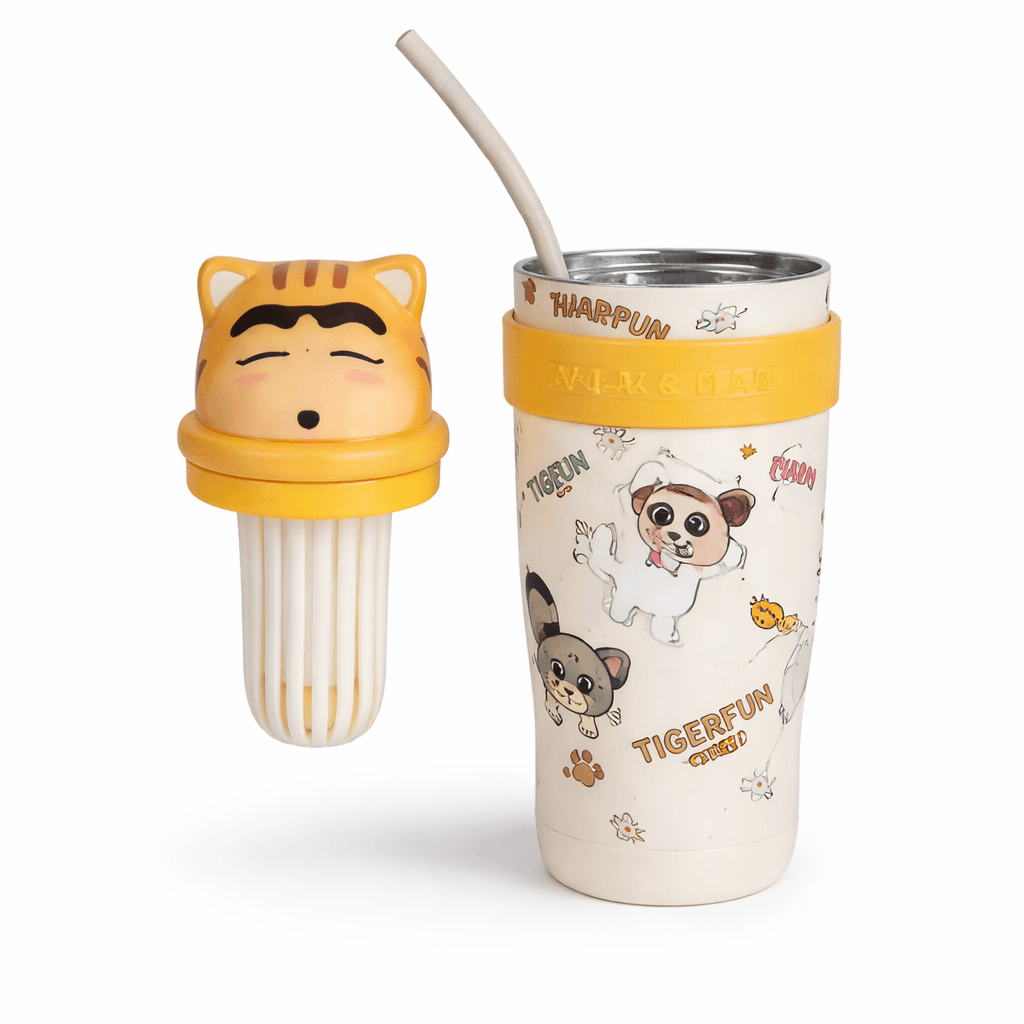 Sip in style with this charming Yellow Cat Shinnosuke Drinking Cup! Featuring Shinnosuke dressed in a playful cat costume, this tumbler is perfect for fans of the beloved character. The cup comes with a convenient yellow handle and a reusable straw, making it perfect for kids and collectors alike.